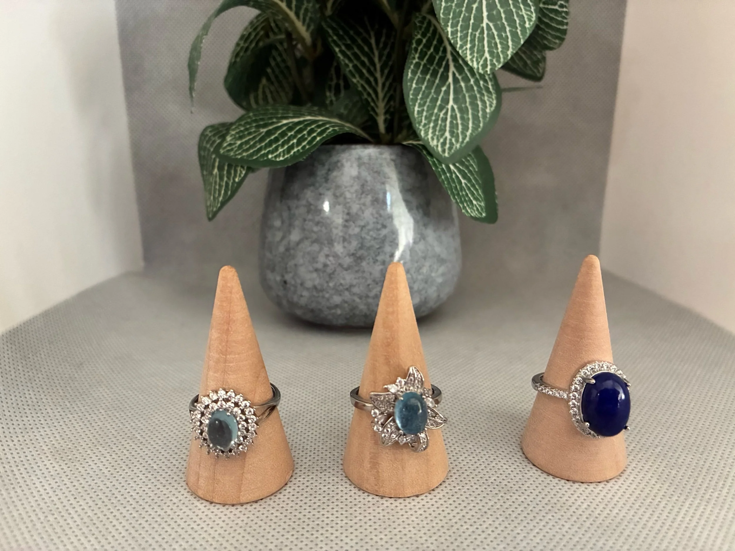 Image 1 of 1 Assorted Rings $20.00 Aquamarine Color: Aquamarine Topaz Lapis Quantity: Purchase Added! Aquamarine